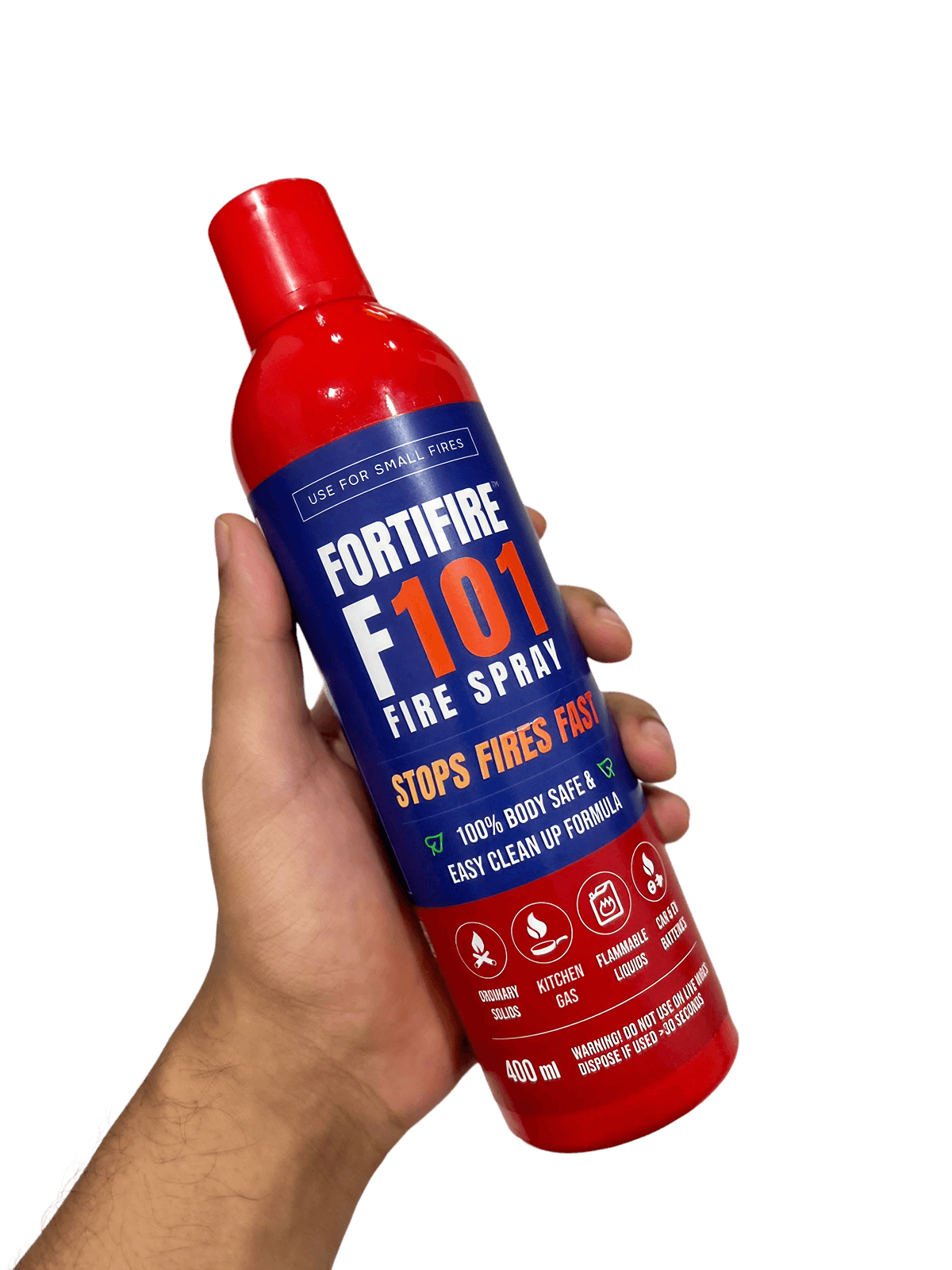 F101 FORTIFIRE is your Fire Safety in a Simple Spray that stops kitchen, electrical, and small household fires – instantly!